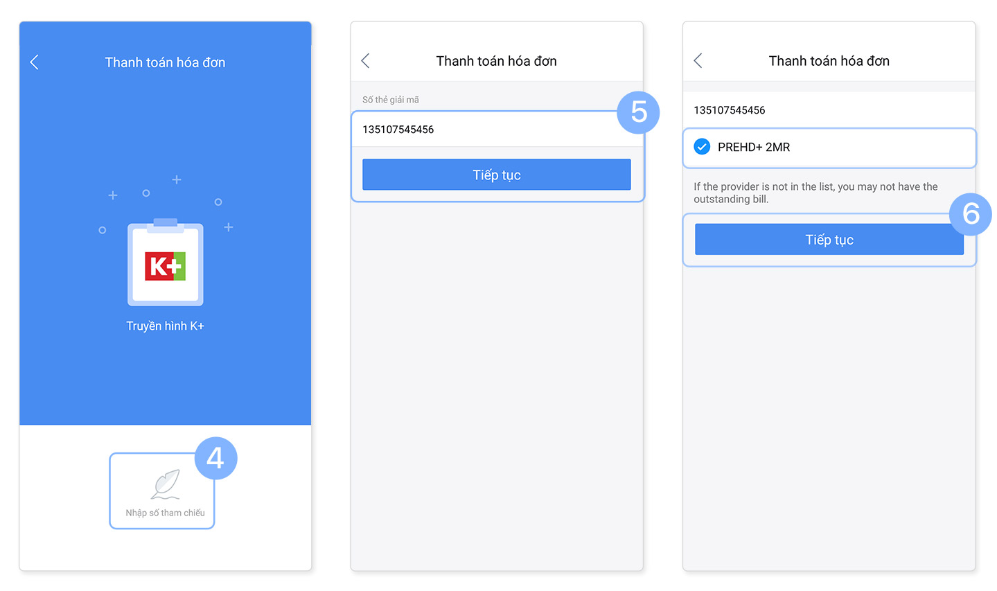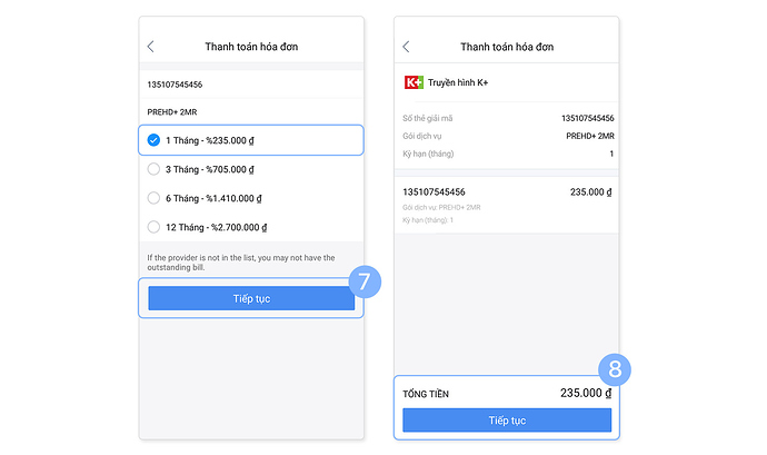 Bước 6: Chọn gói dịch vụ muốn thanh toán, sau đó nhấn “Tiếp”
