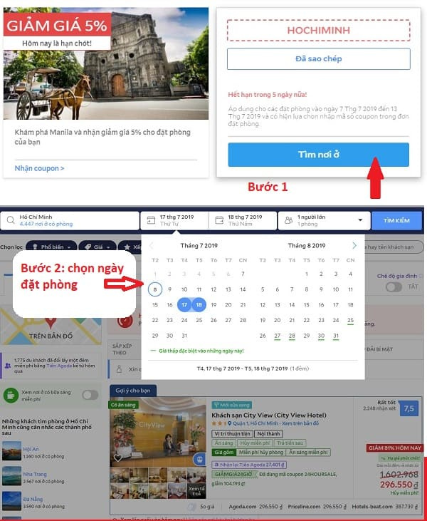Bạn click vào ô “ Tìm nơi ở ” để tìm khách sạn phù hợp với bạn và sử dụng mã coupon agoda vừa lấy.