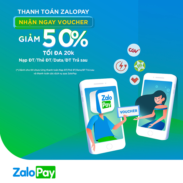 Thanh toán trên Zalopay nhận voucher giảm 50% nạp thẻ ĐT trả sau