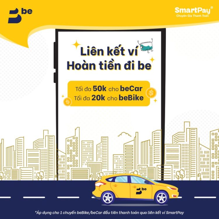 - Từ ngày 21/2/2020, với mỗi thanh toán LẦN ĐẦU qua ví SmartPay cho 1 trong 2 dịch beBike/beCar, bạn sẽ được hoàn tối đa 50k cho beCar hoặc tối đa 20k cho beBike.