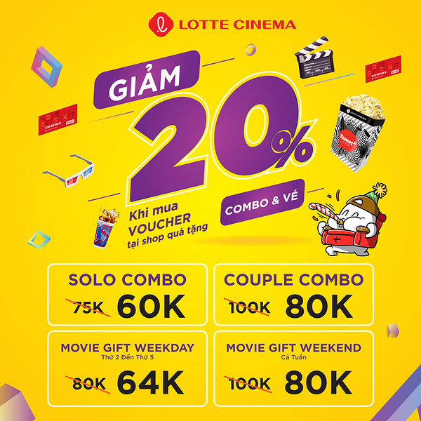| Lotte Cinema | Thứ 2 cuối cùng của tháng | Đồng giá 45k/vé 2D, 75k/vé 3D + Bắp 20k | |