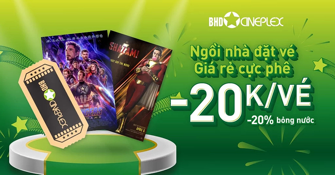 | BHDStar Cineplex | Thứ 4 đầu tiên của tháng | Đồng giá 45k/vé 2D | Áp dụng mua online hoặc tại quầy với khách có thẻ thành viên |
