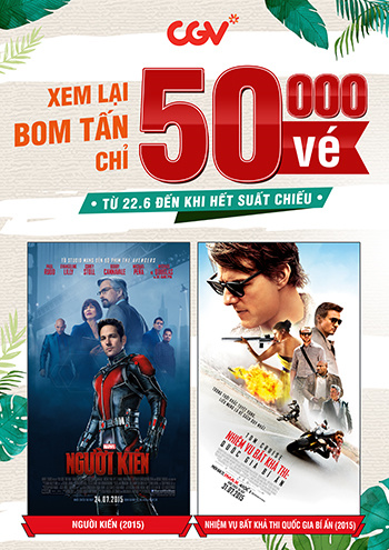 | CGV | Thứ 2 cuối cùng mỗi tháng | Đồng giá 50K/vé 2D tại các rạp CGV ở Hồ Chí Minh, Hà Nội, và CGV Vincom Đà Nẵng; và 45K/vé 2D tại các rạp còn lại. | Áp dụng cho thành viên CGV |