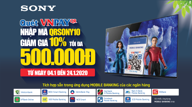 – Khách hàng nhập mã QRSONY10 khi thanh toán bằng tính năng QR Pay trên ứng dụng Mobile Banking sẽ được giảm ngay đến 500.000đ trên mỗi hóa đơn tại MediaMart.