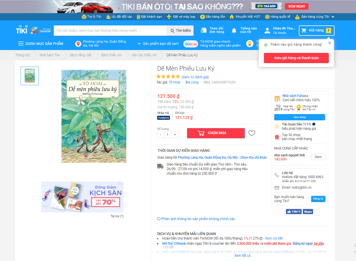 Sau đó thì nhấn “Tiến hành đặt hàng”, điền địa chỉ và mua sản phẩm như bình thường: