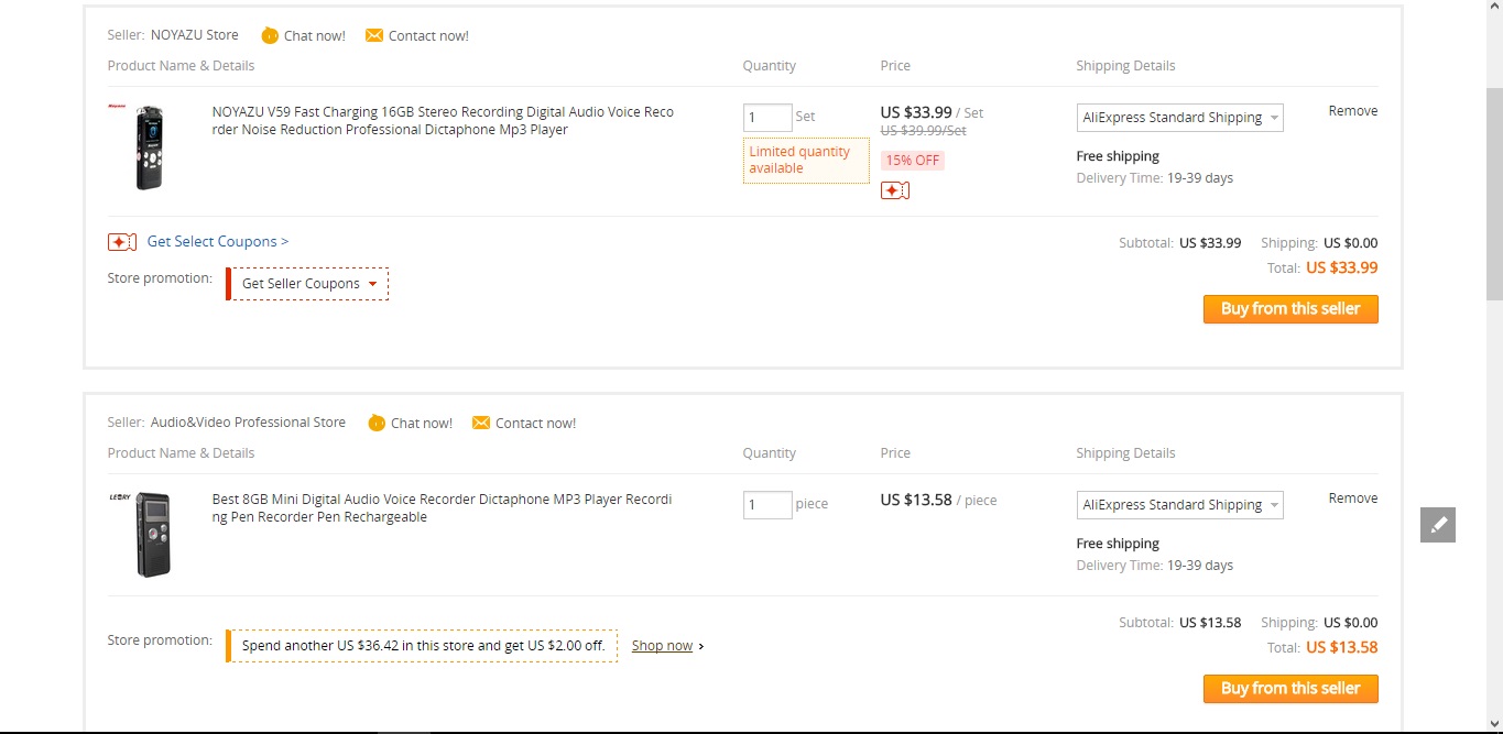 Trong Card sẽ hiển thị từng mặt hàng được phân loại theo từng Seller (Các shop) khác nhau. Nếu bạn đổi ý không muốn mua sản phẩm nào, hãy chọn “remove” sản phẩm đó. Nếu chỉ muốn mua hàng từ Seller nào đó, chọn “Buy from this seller”