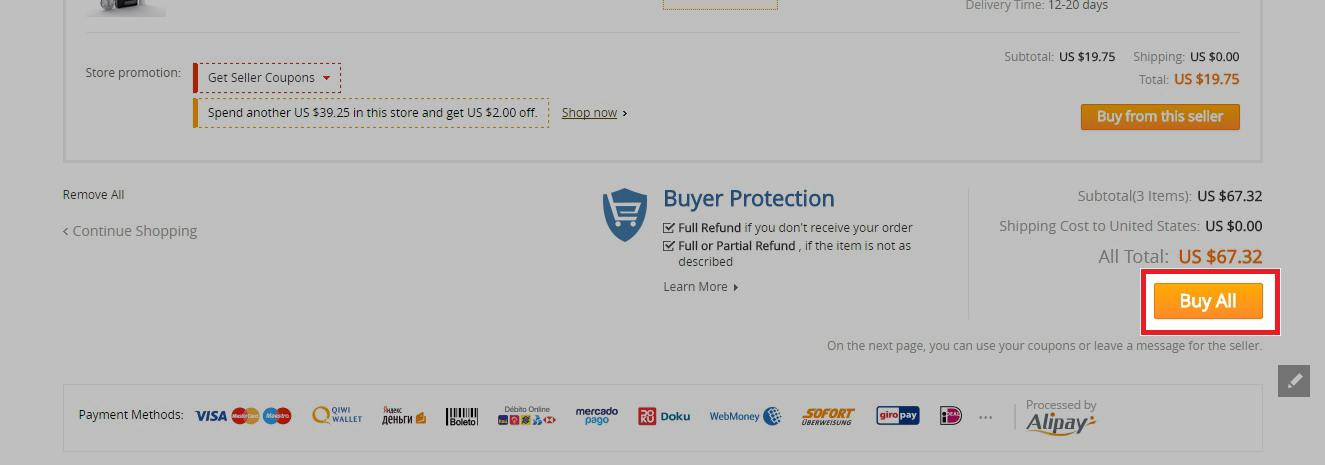 Còn nếu muốn mua tất cả sản phẩm trong cart, hãy chọn “Buy All”