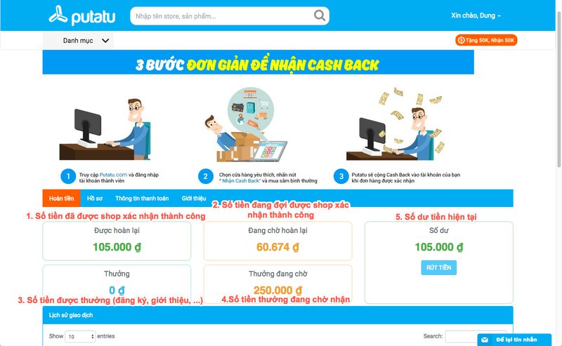 Sử dụng Putatu khi mua sắm là một lựa chọn rất khôn ngoan cho các bạn hay shopping qua internet. Để được hoàn tiền, bạn chỉ cần đi theo các bước đơn giản sau: