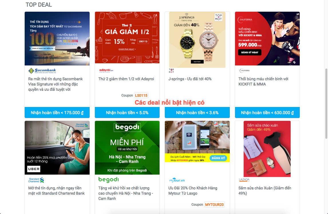 - Chú ý 2: Tỷ lệ hoàn tiền khác nhau theo từng sản phẩm và category.