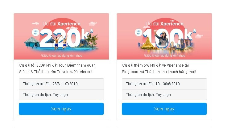 Mã giảm giá Xperience : Đây là loại mã giảm giá Traveloka dành cho các hoạt động trải nghiệm như tour du lịch, vé điểm tham quan, giải trí & thể thao.