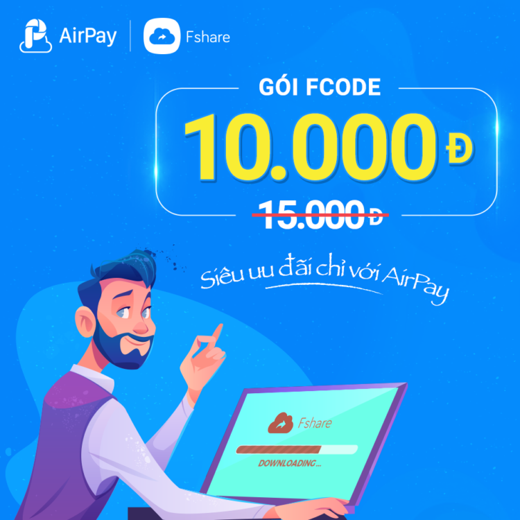 Fcode là gói dịch vụ dùng để tải nội dung tốc độ cao qua đường link trực tiếp từ bạn bè, diễn đàn, hội nhóm. Airpay cùng Fcode khuyến mãi cho người dùng tải phim bất kỳ qua gói Fcode chỉ 10K khi thanh toán bằng Airpay