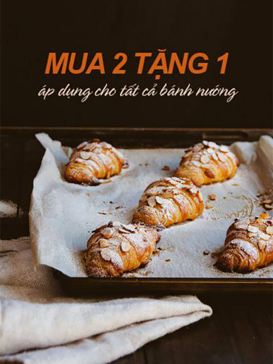 • Mua 2 tặng 1 cho tất cả các sản phẩm bánh nướng