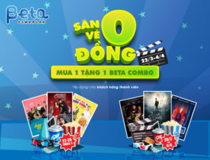 Từ ngày 22/3-4/4/2019, hệ thống Beta Cineplex áp dụng chương trình “Săn vé 0 đồng & Mua 1 tặng 1 Beta combo”.