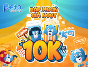 – Beta Cineplex đang có ưu đãi: Với mỗi Beta Combo, sẽ được mua thêm 1 Beta Combo giá 10K.