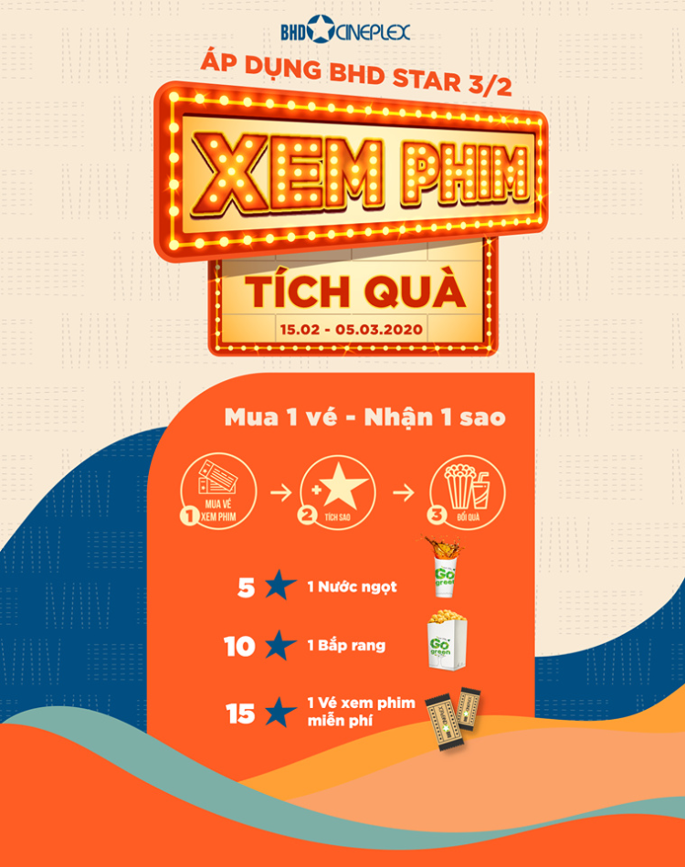 Với mỗi vé xem phim, bạn sẽ được tích một dấu sao vào phiếu tích điểm (được phát tại rạp khi mua vé).