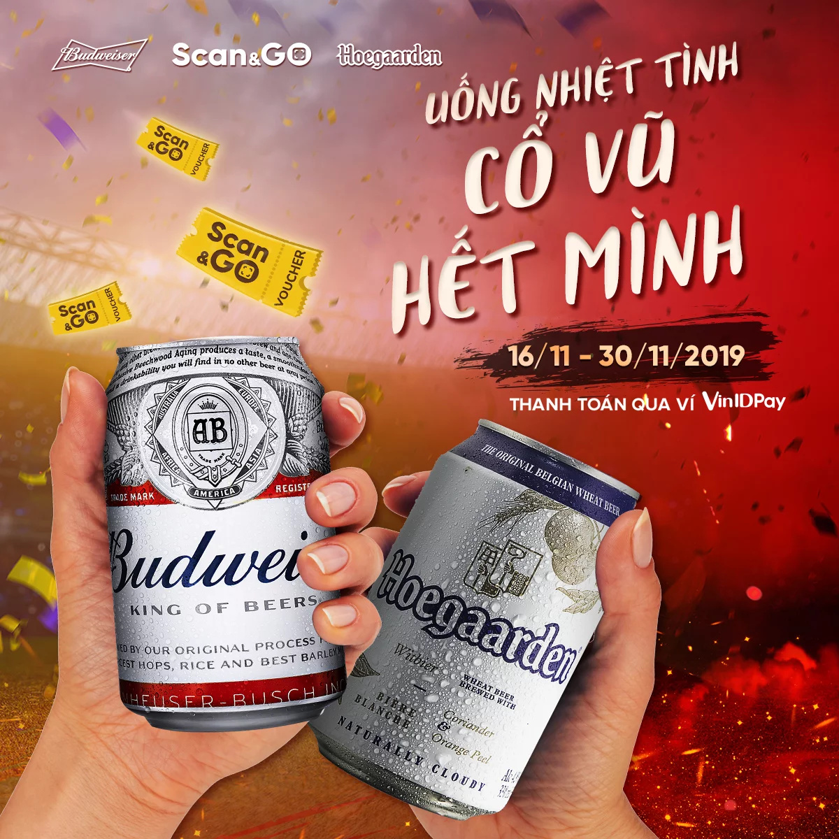 Từ nay đến 30/11/2019, khách hàng mua các sản phẩm bia Budweiser và Hoegaarden trên tính năng Scan&Go và thanh toán bằng Ví điện tử VinID Pay sẽ nhận được ưu đãi cực hấp dẫn: