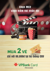 – CGV mở 2 chương trình ưu đãi cho chủ thẻ VPBank MC2 Mastercard. Cụ thể: