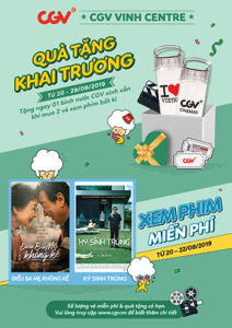 Nhân dịp CGV Vinh Centre vừa ra mắt, từ ngày 20 – 22/8/2019, khách hàng sẽ được nhận vé xem phim miễn phí 2 phim “Điều Ba Mẹ Không Kể” và “Ký Sinh Trùng”