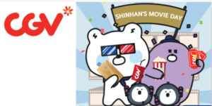 – Giảm 50% khi mua 02 (hai) vé phim 2D tại CGV bằng thẻ tín dụng cá nhân Shinhan Bank Việt Nam