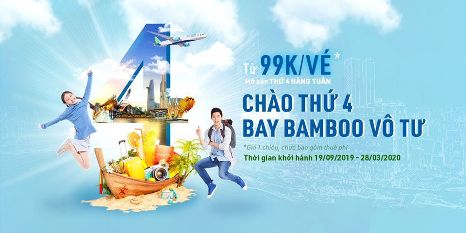 Dành trọn ngày thứ 4, săn vé bay ưu đãi của Bamboo Airways với mức giá “chất lừ” từ 99,000đ/chặng*.