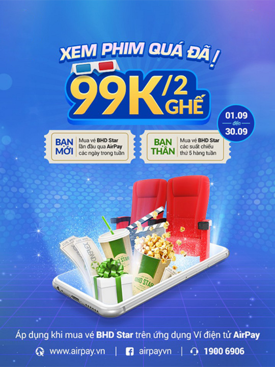 VÉ XEM PHIM CHỈ 99K/2 VÉ KHI SỬ DỤNG AIRPAY