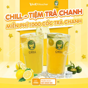 Còn gì bằng khi những buổi tối được ngồi trà chanh và trò chuyện cùng đám bạn thân? Tuyệt vời hơn thế khi Chill – Tiệm Trà Chanh mang đến cho khách hàng chương trình ưu đãi tặng 1 cốc trà chanh miễn phí khi đi với nhóm bạn 3 người trên app VinID.