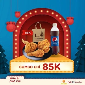 – Combo 3 miếng gà rán, 1 pepsi 390ml, 1 túi vải chỉ 85.000 đồng khi thanh toán bằng VinID