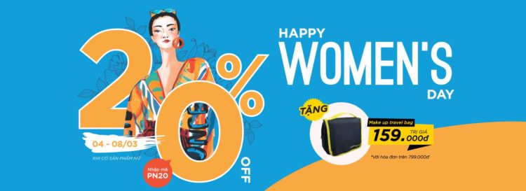 Với mỗi hóa đơn chứa sản phẩm nữ có giá trị từ 799K sau giảm giá sẽ được nhận túi đựng đồ trang điểm tiện ích. Áp dụng mua hàng trong 3 ngày đặc biệt 06, 07 & 08/03.