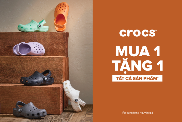 Crocs triển khai chương trình ưu đãi mua 01 tặng 01 sản phẩm nguyên giá.