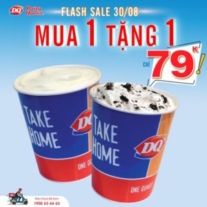 Dairy Queen khuyến mãi mua 1 tặng 1 với kem hộp vị tùy chọn với 5 vị (79K/hộp).