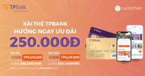 Nhập mã TPLUX200 : Ưu đãi 200.000 VNĐ. Áp dụng cho tất cả booking thanh toán trực tiếp qua thẻ TPBank.