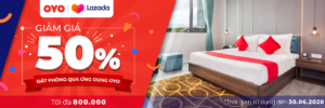 – Ưu đãi 1: Giảm 50% tối đa 800.000 VND áp dụng khi đặt 1 phòng và tối đa 2 đêm tại ứng dụng OYO.