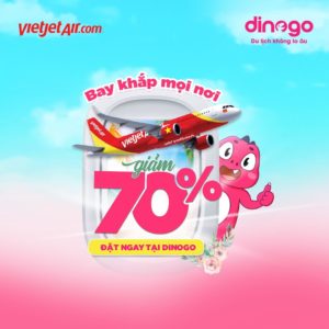 Ưu đãi 70% (chưa bao gồm thuế  phí) giá vé Vietjet khi đặt trên Dinogo, áp dụng cho tất cả chặng bay trong nước và quốc tế.