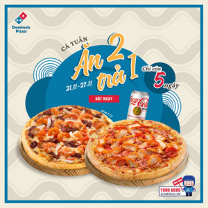 Ưu đãi: tặng 1 pizza cùng cỡ khi mua 1 pizza cỡ vừa / lớn (9″ / 12″) kèm nước bất kỳ.