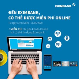 – MIỄN PHÍ chuyển khoản trong hệ thống; chuyển khoản thường trong nước, ngoài hệ thống; chuyển khoản nhanh trong nước, ngoài hệ thống Eximbank thông qua Internet Banking/ Mobile Banking….