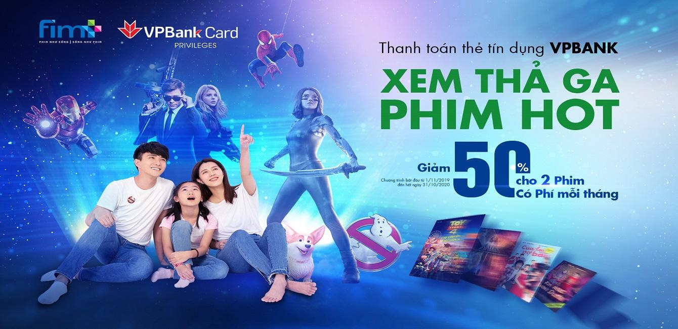 Ưu đãi từ Film+: Giảm giá 50% cho 02 Phim Có Phí mỗi tháng (phim bất kỳ) áp dụng cho Khách hàng thanh toán bằng thẻ Tín dụng VPBank.