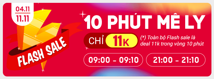 - Từ 9:00-9:10 và 21:00-21:10 Toàn bộ flash sale là deal 11k trong vòng 10 phút