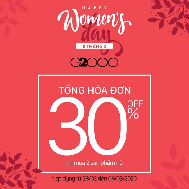 • Giảm 30% tổng hóa đơn khi mua 2sp NỮ (áp dụng cho sản phẩm nguyên giá hoặc đang giảm đến 20%)