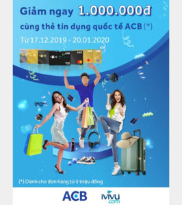 • Chủ thẻ tín dụng quốc tế ACB có giao dịch thanh toán bằng thẻ tín dụng quốc tế ACB Visa/ MasterCard/JCB cho đơn hàng đặt phòng khách sạn, Tour hoặc Combo du lịch tại IVIVU.COM.