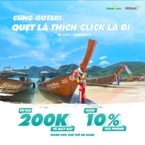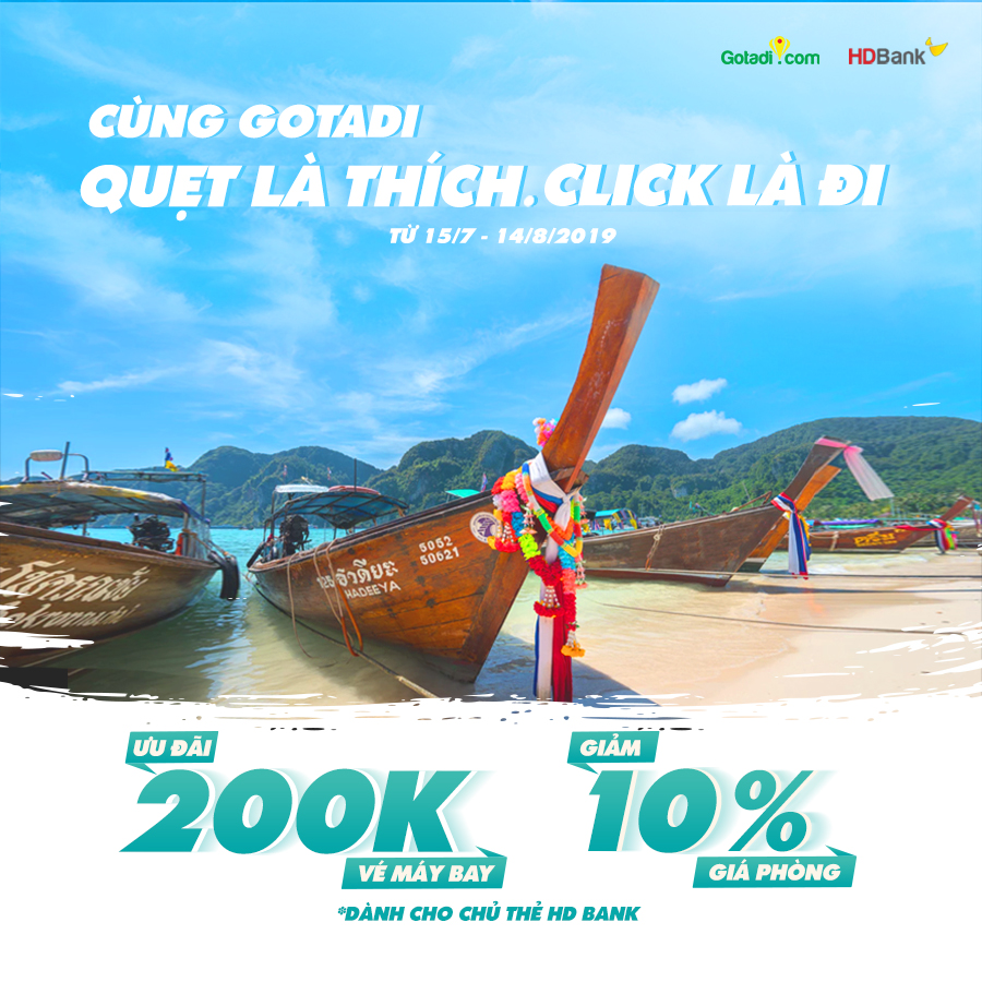 Chủ thẻ HD Bank khi đặt vé máy bay và khách sạn trên Gotadi.com sẽ được nhận ưu đãi hấp dẫn từ Gotadi