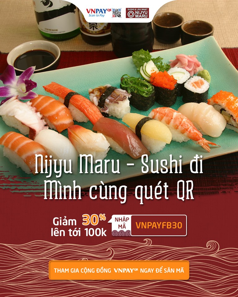 Ưu đãi hấp dẫn từ quán Sushi Nhật – Sushi & Lẩu Nijyu Maru dành cho khách hàng khi quét mã VNPAY.