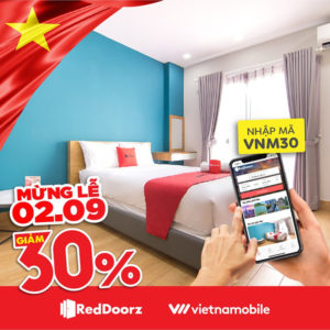 Ưu đãi đặt biệt nhân dịp Quốc Khánh 2/9 cho 500 anh em, chỉ cần đặt phòng bất kỳ tại khách sạn RedDoorz, bạn sẽ được GIẢM NGAY 30% đặt phòng + TẶNG 01 SIM 4G DATA, GỌI NỘI MẠNG KHÔNG GIỚI HẠN từ Vietnammobile khi nhập mã VNM30