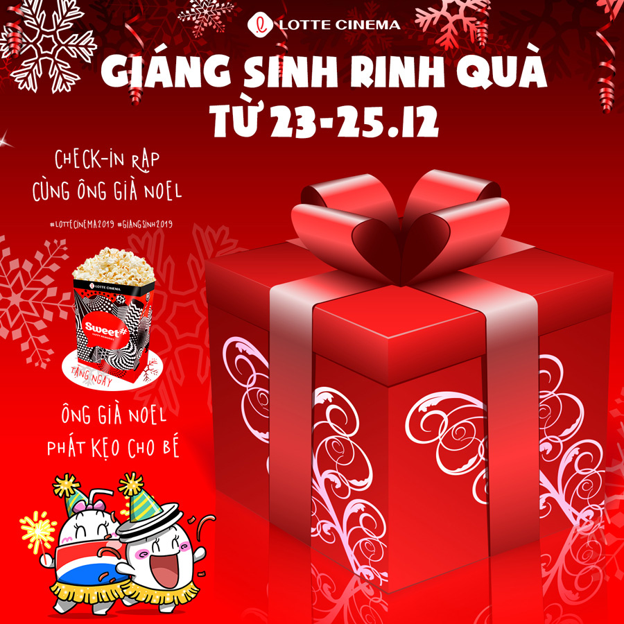 - Khách hàng chụp ảnh với ông già Noel của Lotte Cinema sau đó đăng lên FB với hashtag #lottecinema2019. # Giangsinh2019 sẽ nhận được 1 bắp ®.