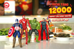 Khách hàng có 01 vé xem phim Avengers: Endgame (tại rạp bất kỳ) nhận ngay 01 suất Buffet lẩu băng chuyền khi đi theo nhóm 4.