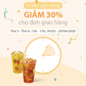 Gongcha khuyến mãi 30% tối đa 60k cho đơn từ 200k. Không áp dụng giảm giá cho combo 2 loại hạt và 3 loại hạt và free shipping trong bán kính 2km