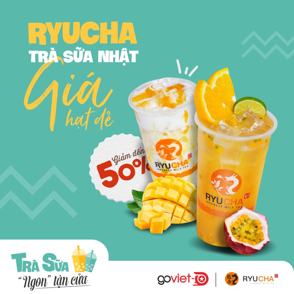 Các bạn TP.HCM đặt ngay trà sữa Ryucha đang được giảm NỬA GIÁ tại GoViet nè, đã thế lại còn được FREESHIP dưới 5km nữa chứ, quá ngon!