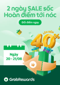 - Đối với hạng mức thành viên Bạch Kim/ Platinum: HOÀN ĐIỂM 40% khi đổi ưu đãi bất kì trên GrabRewards.