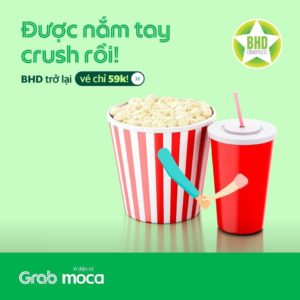 - Ưu đãi dành riêng cho khách hàng thanh toán qua Ví điện tử Moca trên ứng dụng Grab tại các cụm rạp BHD tại Hà Nội, TP.HCM.