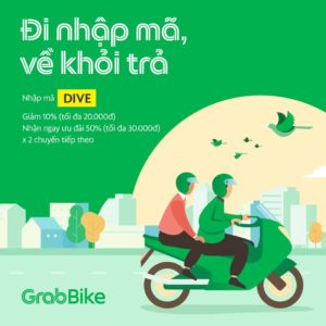 Nhập mã DIVE cho các chuyến GrabBike từ 6h đến 16h hàng ngày: