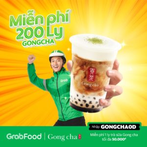 GrabFood tặng người dùng mã GONGCHA0D giảm ngay 100% tối đa 50K cho đơn GongCha.